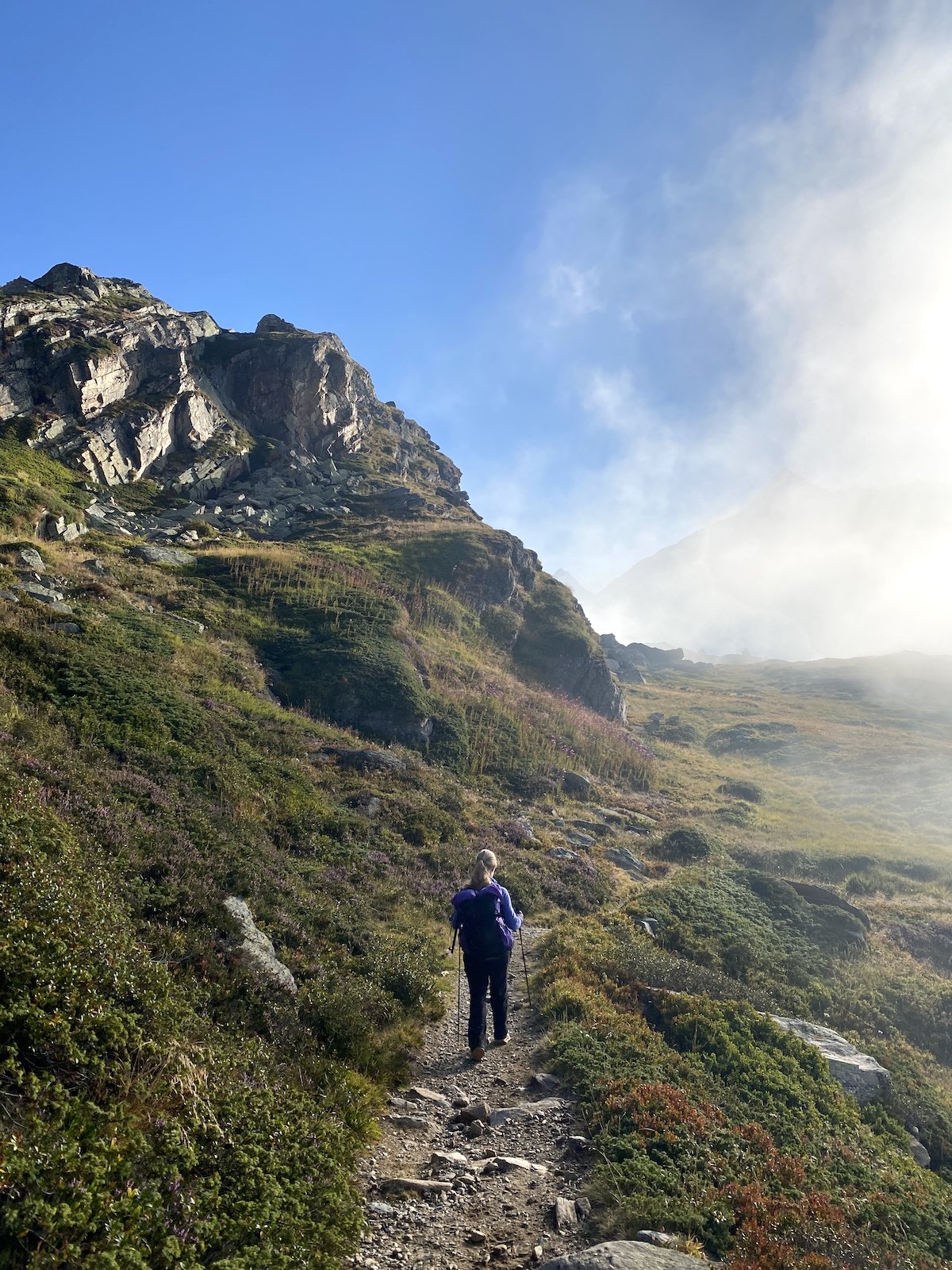 For multi-day Get out! trips, we’ll want to discuss specifics in advance based on the trip we design. In any case, I suggest keeping it light. If we’re staying in refuges, you’ll need a sleep sack (liner, not a full sleeping bag) and some comfy clothes to change into after the hike. For all trips, bring sturdy hiking shoes, non-cotton layers and a waterproof raincoat, at least one liter of water and snacks. I’ll send a more detailed packing list before the trip. I’ll cater it to the exact trip we’ll do and weather and trail conditions we can expect on the hike. And if we’re traveling home by train, I like to pack a fresh pair of “train socks” :)
